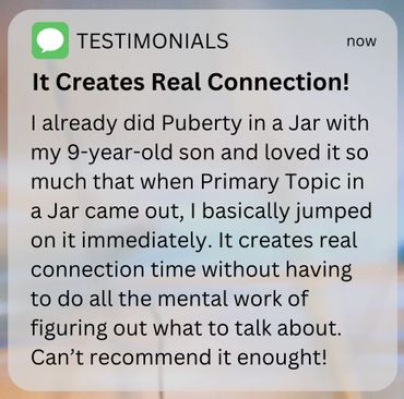 How many times have you heard, "the talk is outdated, you need to have lots of small, ongoing talks with your teen" but then they never tell you how to do that! "Teen Topics in a Jar" is the answer.